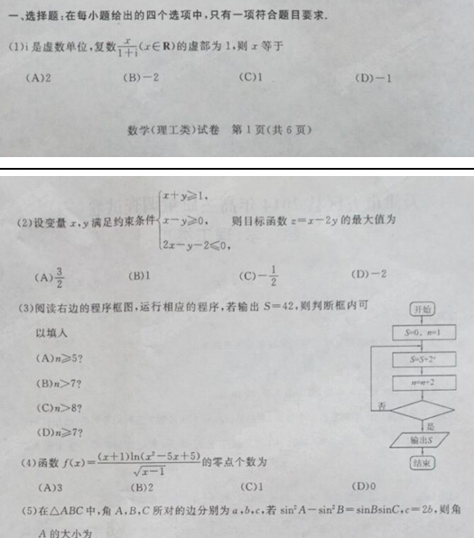 天津五区县2014届高三第二次模拟考试 (数学理)扫描版
