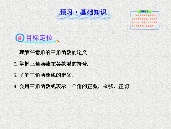2013版高中数学全程学习夺冠方略配套课件:1.2.1任意角的三角函数(苏教版必修4)