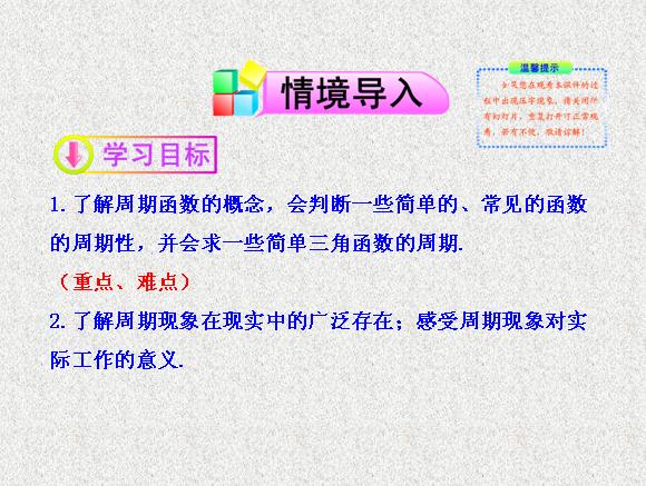 2013版高中数学全程学习夺冠方略多媒体课件:1.3.1 三角函数的周期性(苏教版必修四)