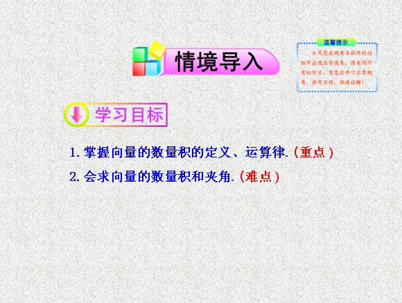 2013版高中数学全程学习夺冠方略多媒体课件:2.4 第1课时 向量的数量积(苏教版必修四)