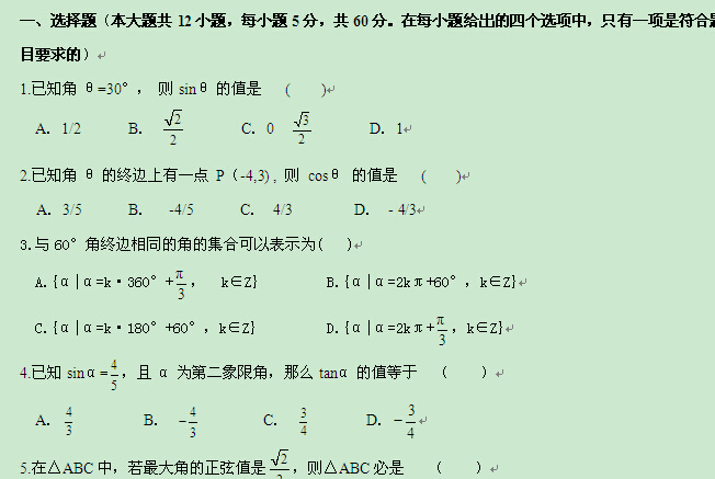 湖南省益阳市十七中2013-2014学年高一下学期期中考试(数学)