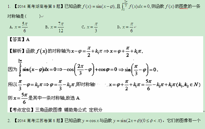 2014年高考(数学理)分项版解析:专题04 三角函数与解三角形(分类汇编)Word版含解析