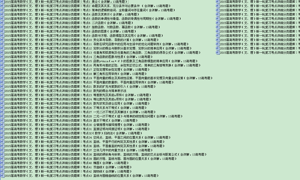 [打包下载]2015届高考数学(文、理)新一轮复习考点详细分类题库(共55套)