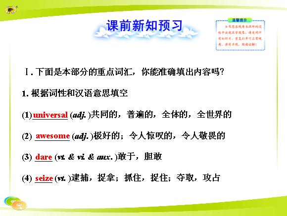 【新人教版】2025版高三一轮复习教材模块牢记课标词汇选择性必修第一册Unit3FascinatingParks课前自测课件(英语)