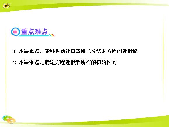 2013版高中数学同步教师用书配套课件:4.1.2利用二分法求方程的近似解(北师大版必修1)