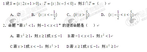 辽宁省抚顺重点高中协作校09-10学年高二上学期期末考试(数学文)