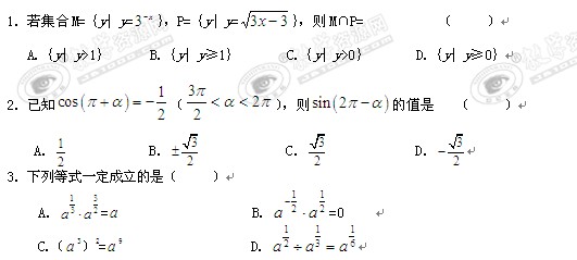 浙江省台州中学09-10学年高一第三次统练(数学)
