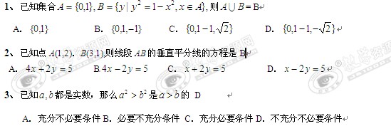 福建省南靖一中2010届高三文科综合卷(1)(数学)
