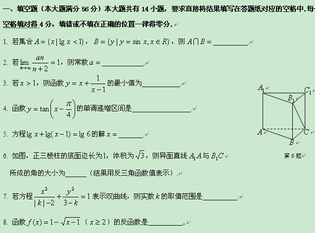 上海市普陀区2014-2015学年度高三上学期12月质量调研(数学文)