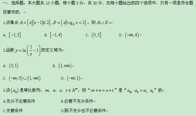 齐鲁名校教科研协作山东省2015届高三第一次调研考试(数学理)