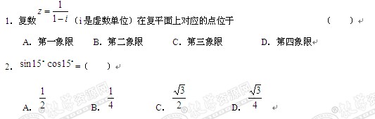浙江省温州市十校联合体2010届高三上学期期末试题(数学理)