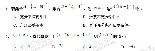 广西梧州市2010届高三第一次模拟考试(数学理)