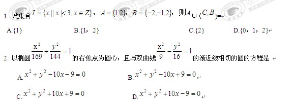 山西省忻州一中2010届高三上学期期末考试(数学文)