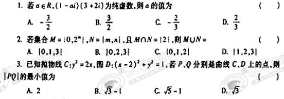 陕西省2010届高三第一次检测试题(数学)扫描版