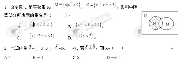 广东省梅县东山中学2010届高三上学期期末考试(数学文)