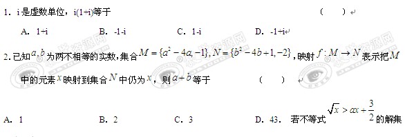 云南省2010届高三下学期模拟试题(4)(数学文)