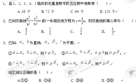河北省衡水中学09-10学年度高二上学期期末考试(数学理)