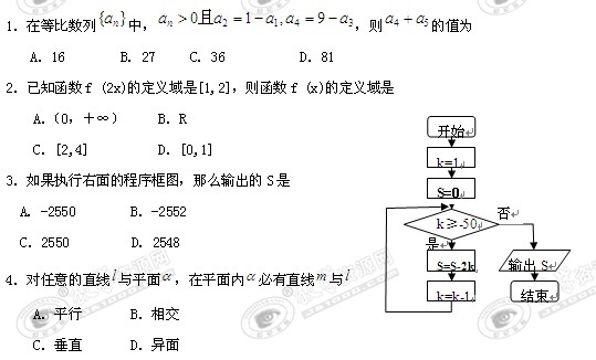 广东省广州市越秀区2010届高三年级调研试题(数学理)
