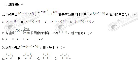 广西南宁市2010年高中毕业班第一次适用性考试(数学理)(word版)