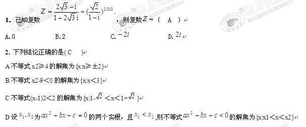江西省鹰潭市2010届高三第一次模拟考试(数学理)