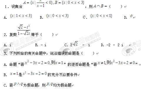 福建省宁德四县市一中2010届高三第一次联考(数学文)