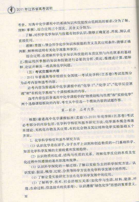 2011年江苏省高考化学考试说明
