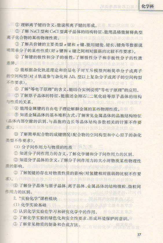 2011年江苏省高考化学考试说明