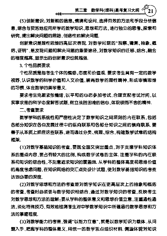 2011高考数学复习大纲(人教大纲版)(数学理)