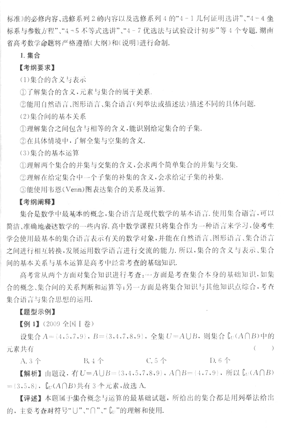 湖南省2011高考考试说明(理科数学)