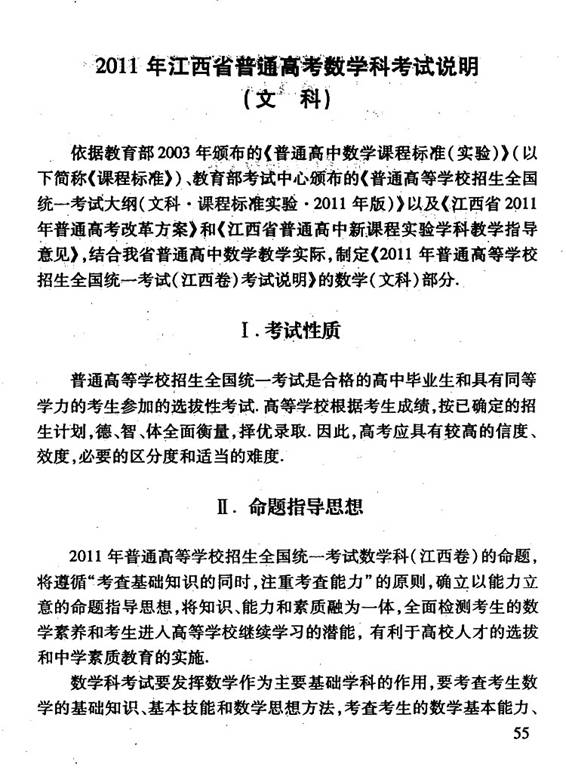 2011年江西省高考考试说明(数学文)