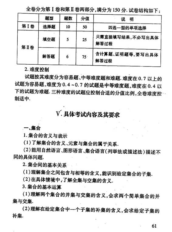 2011年江西省高考考试说明(数学文)