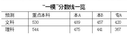 记者从市教育局教研室获悉,今年广州市高考一模的预测上线分数线已公布,文科重点分数线为530,理科重点分数线为544,与去年相比变化不大。但文科本科分数线比去年提高18分。