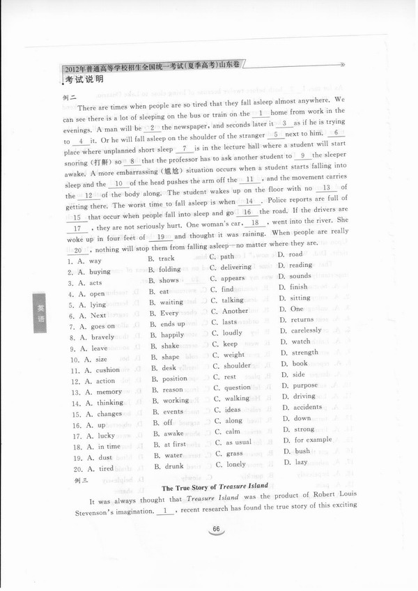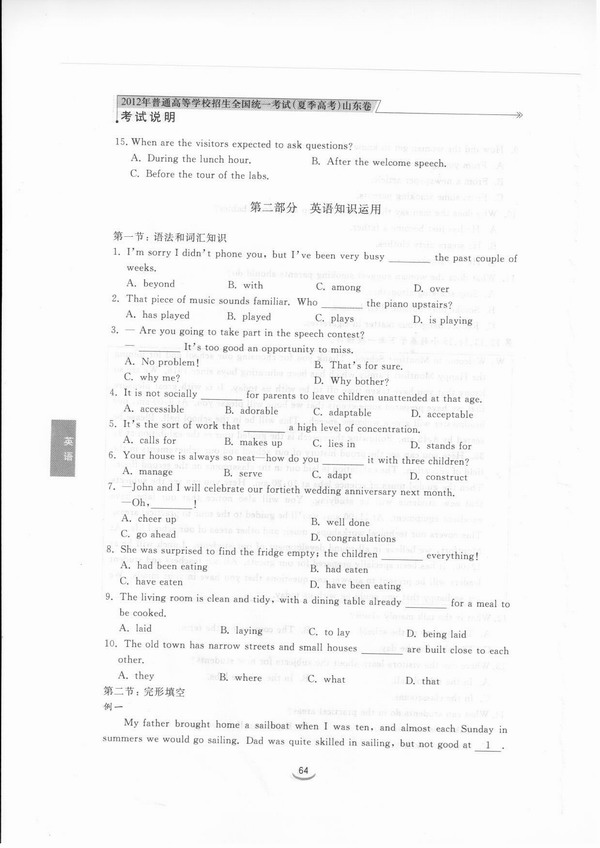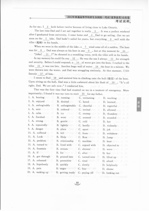 2012年普通高等学校招生全国统一考试(夏季高考)山东卷英语考试说明