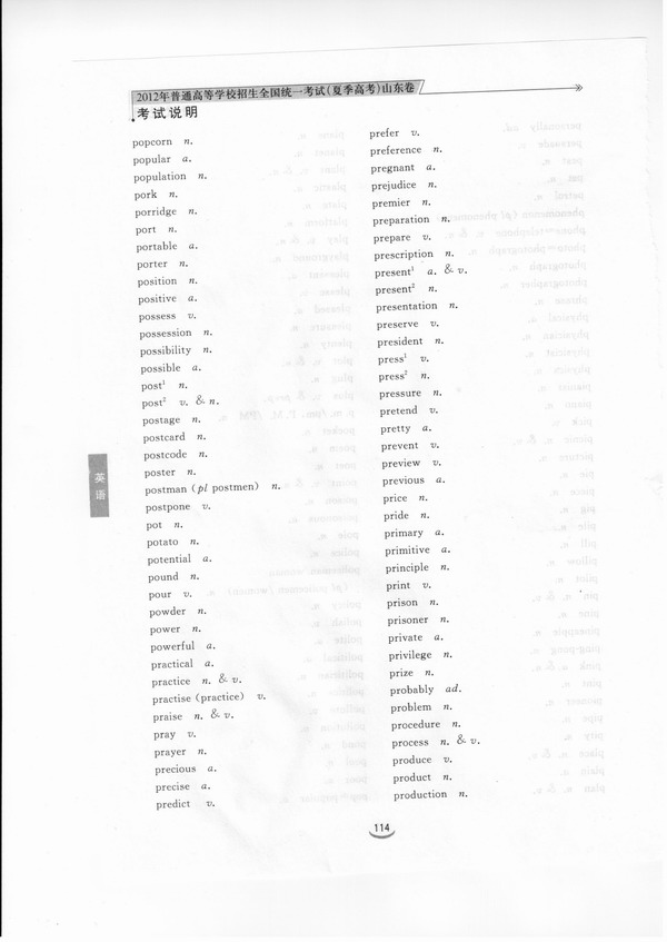 2012年普通高等学校招生全国统一考试(夏季高考)山东卷英语考试说明