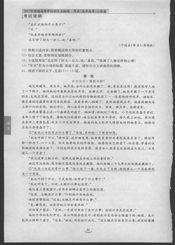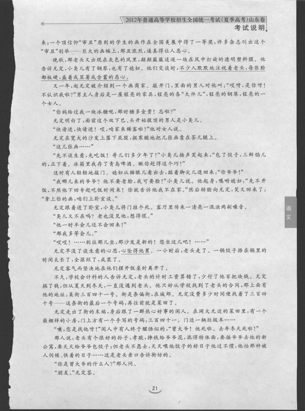 2012年山东省高考语文考试说明(图片版)