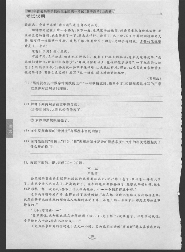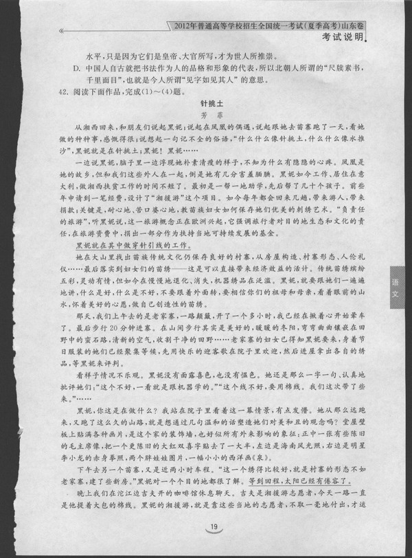 2012年山东省高考语文考试说明(图片版)