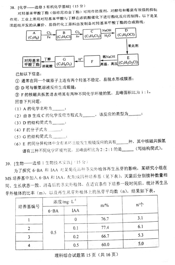 2012年普通高等学校招生全国统一考试陕西卷(理综)扫描版无答案