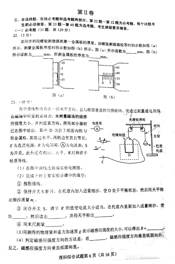 2012年普通高等学校招生全国统一考试陕西卷(理综)扫描版无答案
