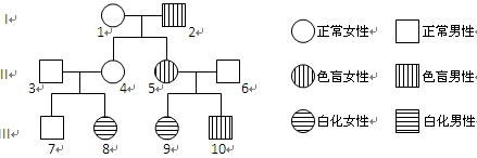 (3)调查中发现一男生(III10)患有红绿色盲,其姐姐患有白化病,经调查其家族系谱图如下: